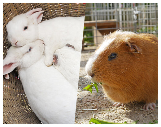 お子様に大人気!小さな癒し系 大きい動物さんがちょっぴり怖いお友だちもふれあえる小さくて可愛い動物さんたち。ニンジンが大好物ですが、体が小さいのでお腹がいっぱいになってしまうことも。 ウサギ&